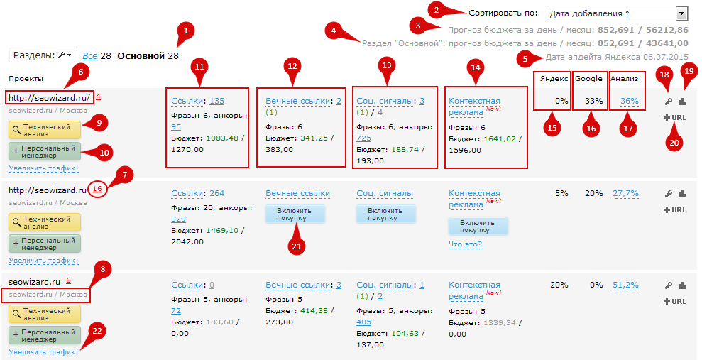 - Анализ сайта: для вашего сайта и сайтов конкурентов.
