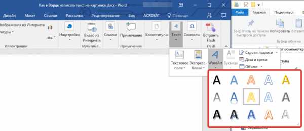 Как вставить текст в картинку в Ворде при помощи Word Art?