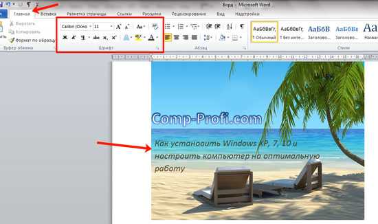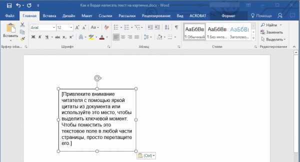 5. Переместите текстовое поле на картинку, если это необходимо, выровняйте положение объектов, воспользовавшись инструментами в группе “Абзац” (вкладка “Главная”).