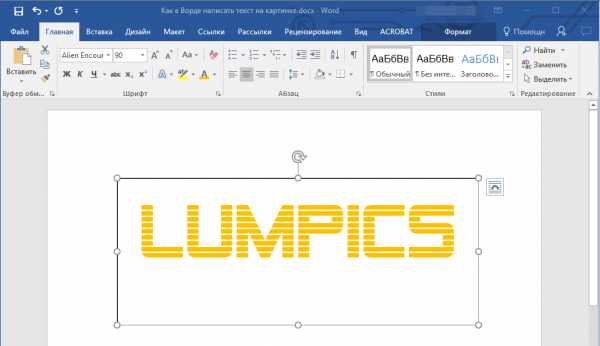 6. Готово, вы наложили надпись в стиле WordArt поверх изображения.