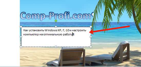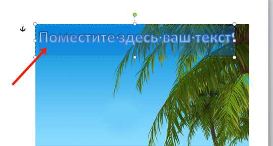 Дальше нужно выделить мышкой текст внутри рамки и изменить его. Таким образом вы вставите нужный вам текст в картинку.