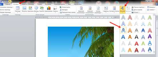 Добавление поверх рисунка надписи в стиле WordArt