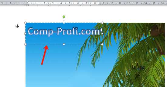 Теперь кликните мышкой по границе надписи – пунктирная линия, и, не отпуская левой кнопки мышки, перетащите блок на изображение.