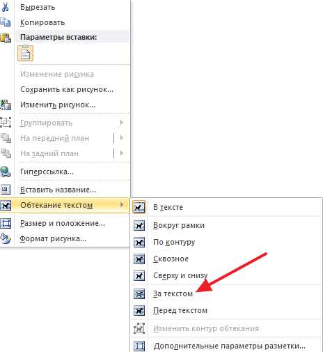 Как сделать картинку поверх текста в word?