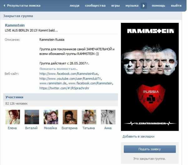То есть он, пользователь, сможет подать заявку в группу. А вот что он увидит, если группа будет частной: