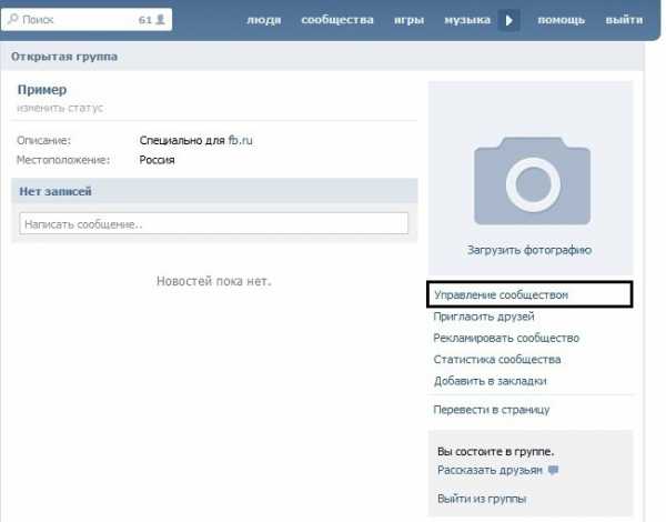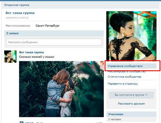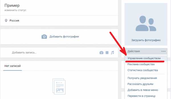 Зайдите в свою группу и нажмите на пункт «Управление сообществом».
