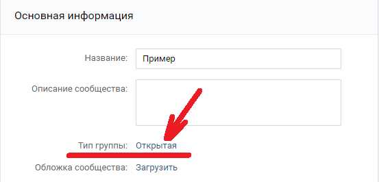 - Откроются основные настройки группы. Здесь нужно нажать Открытая в разделе Тип группы