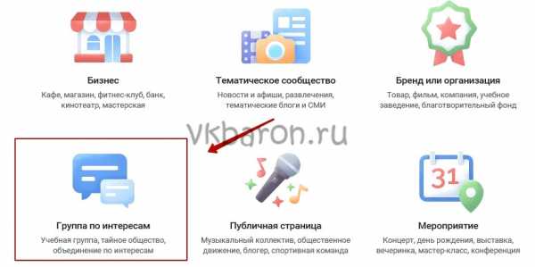 - Выбрать тип сообщества «Группа по интересам» посредством нажатия одноименной кнопки.