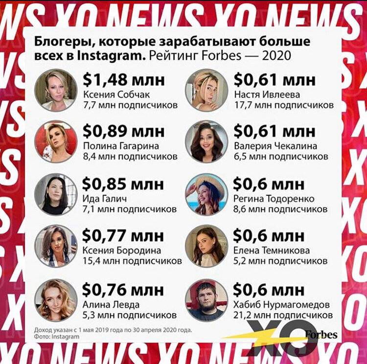 в год. Конечно же, в ТОП попал и Юрий Дудь: доход с рекламы на его канале составляет около $980 тыс. в год.