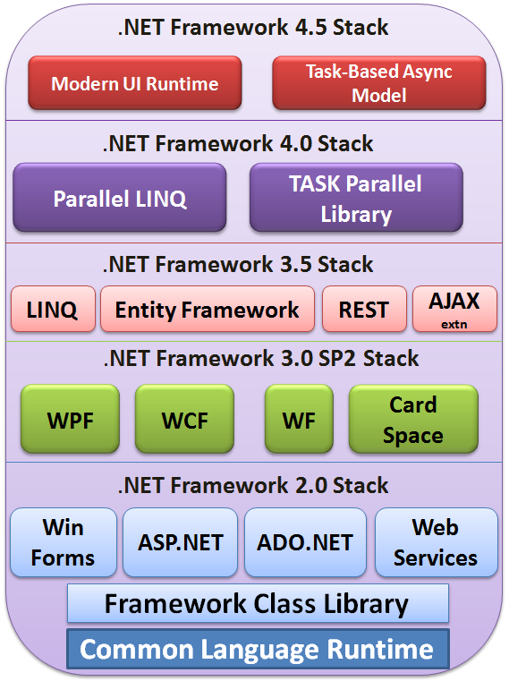 .NET Framework — ΠΏΠ΅ΡΠ²Π°Ρ ΠΈ ΡΠ°ΠΌΠ°Ρ ΡΡΠ°ΡΠ°Ρ ΡΠ΅Π°Π»ΠΈΠ·Π°ΡΠΈΡ ΠΏΠ»Π°ΡΡΠΎΡΠΌΡ. ΠΠ½ Π²ΠΊΠ»ΡΡΠ°Π΅Ρ ΡΡΠΈ ΠΎΡΠ½ΠΎΠ²Π½ΡΠ΅ ΠΌΠΎΠ΄Π΅Π»ΠΈ ΠΏΡΠΈΠ»ΠΎΠΆΠ΅Π½ΠΈΠΉ — WPF, Windows Forms, ASP.NET Forms — ΠΈ Π±ΠΈΠ±Π»ΠΈΠΎΡΠ΅ΠΊΡ Π±Π°Π·ΠΎΠ²ΡΡ ΠΊΠ»Π°ΡΡΠΎΠ².