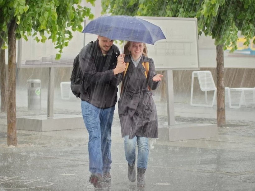 Под зонтом в ливень