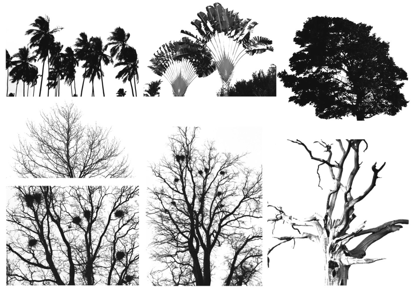 Ключевые слова: деревья, сосны, пальмы, абстрактные деревья, линии рисования деревьев