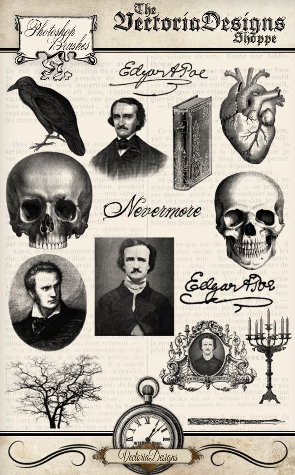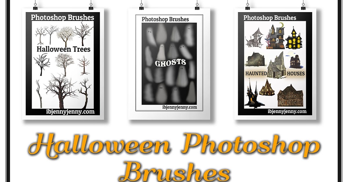 Включает в себя 19 силуэтных кистей предметов, связанных с Хэллоуином, размером от 62 до 455 пикселей, созданных в Adobe Photoshop CS2.