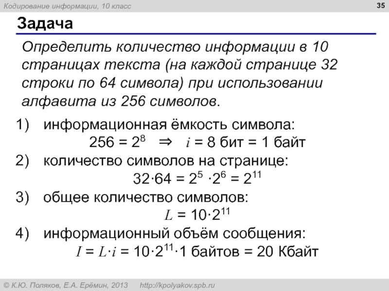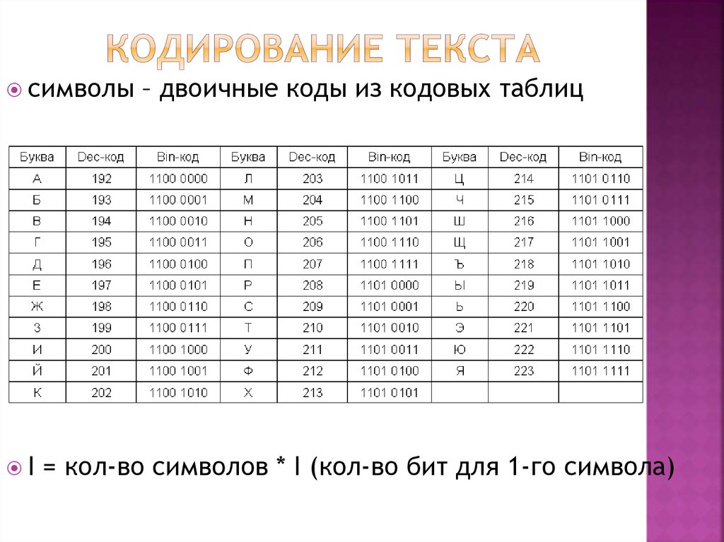 Любой вариант текстовой информации представлен с помощью последовательности определенных символов: цифр, букв, схем, диаграмм, таблиц, знаков математических действий и т.п.