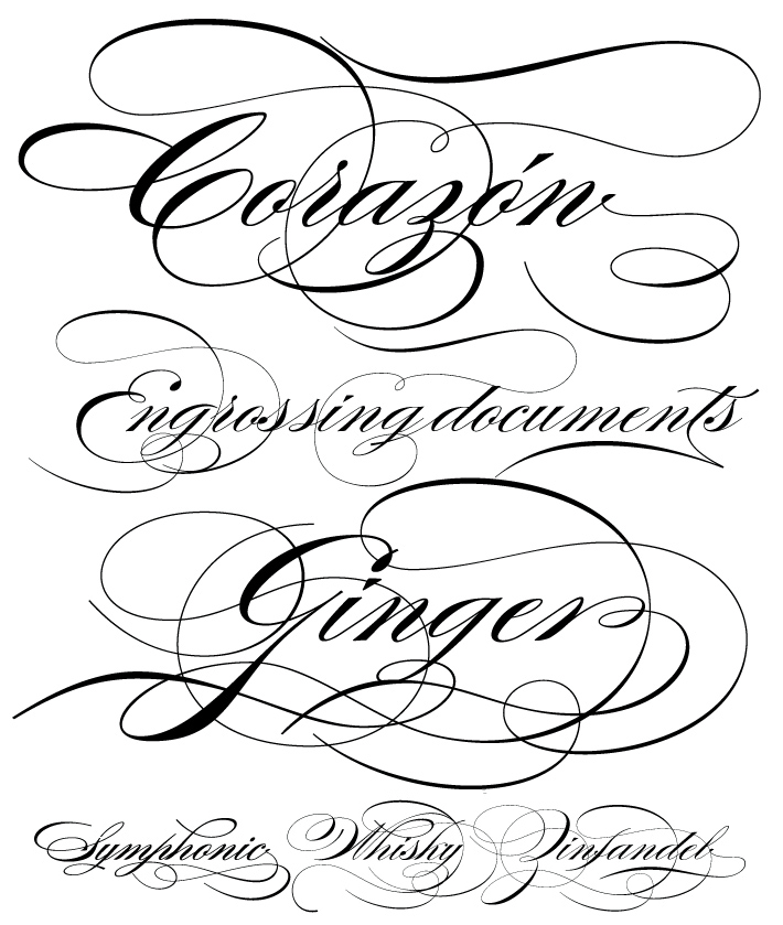 Файл включает в себя полный набор символов, а также несколько уникальных глифов лигатуры.