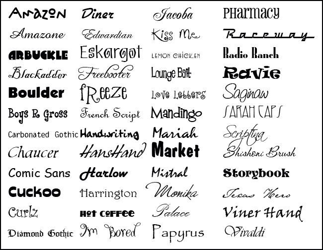Существующие сегодня шрифты условно можно распределить на следующие категории: