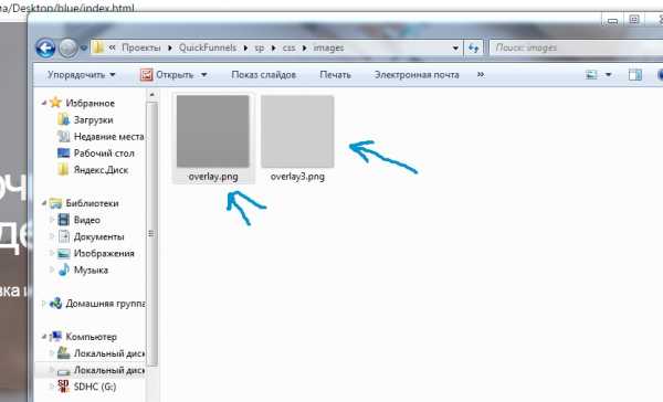 Все вроде бы неплохо, но мне, например, кажется, что фон у нас слишком светлый, и белые буквы на нем теряются. Предлагаю наложить более темный фильтр на картинку. Для этого переходим в папку «assets -> css ->images» и меняем названия у двух файлов, которые там расположены.