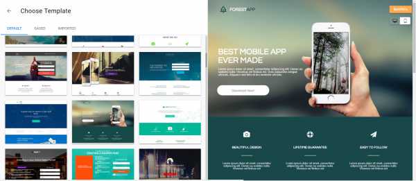 Далее выбираем понравившийся шаблон, после чего нас перенаправляет в редактор. Интуитивно понятный интерфейс на русском языке позволит собрать сайт за 5-10 минут. Не нужно обладать познаниями в дизайне — все блоки уже готовы и наполнены. Нам лишь стоит поменять их содержание в соответствии с нашей деятельностью и форму-цвет, а также переставить элементы местами, если это требуется.