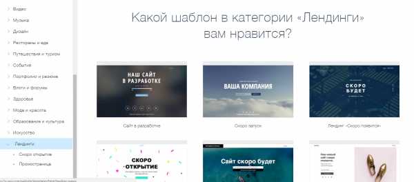 Далее меню предоставляет нам модификации сайтов — мы выбираем пункт «Лендинги».