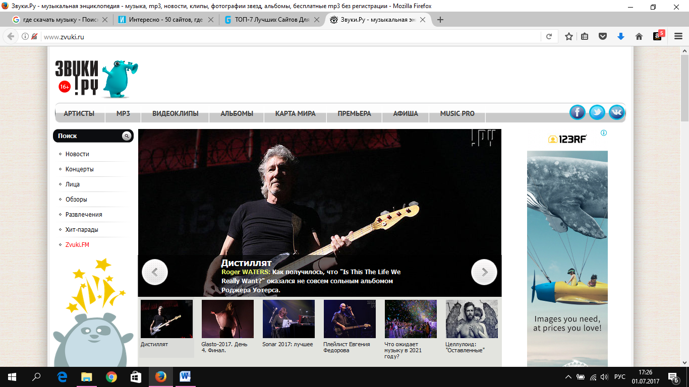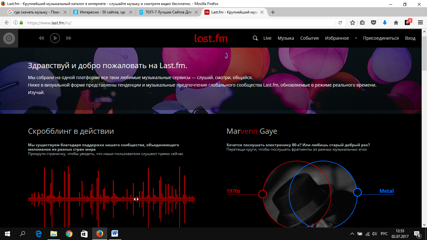 Звуки.ру не просто сайт с отличной фонотекой – это многофункциональный портал, где можно найти статьи о музыке, узнать, что слушают знаменитости и даже приобрести билеты на предстоящие концерты, не покидая сайт. Помимо этого, на сайте размещена потрясающая аудиотека, которая доступна как для онлайн прослушивания, так и для скачивания.