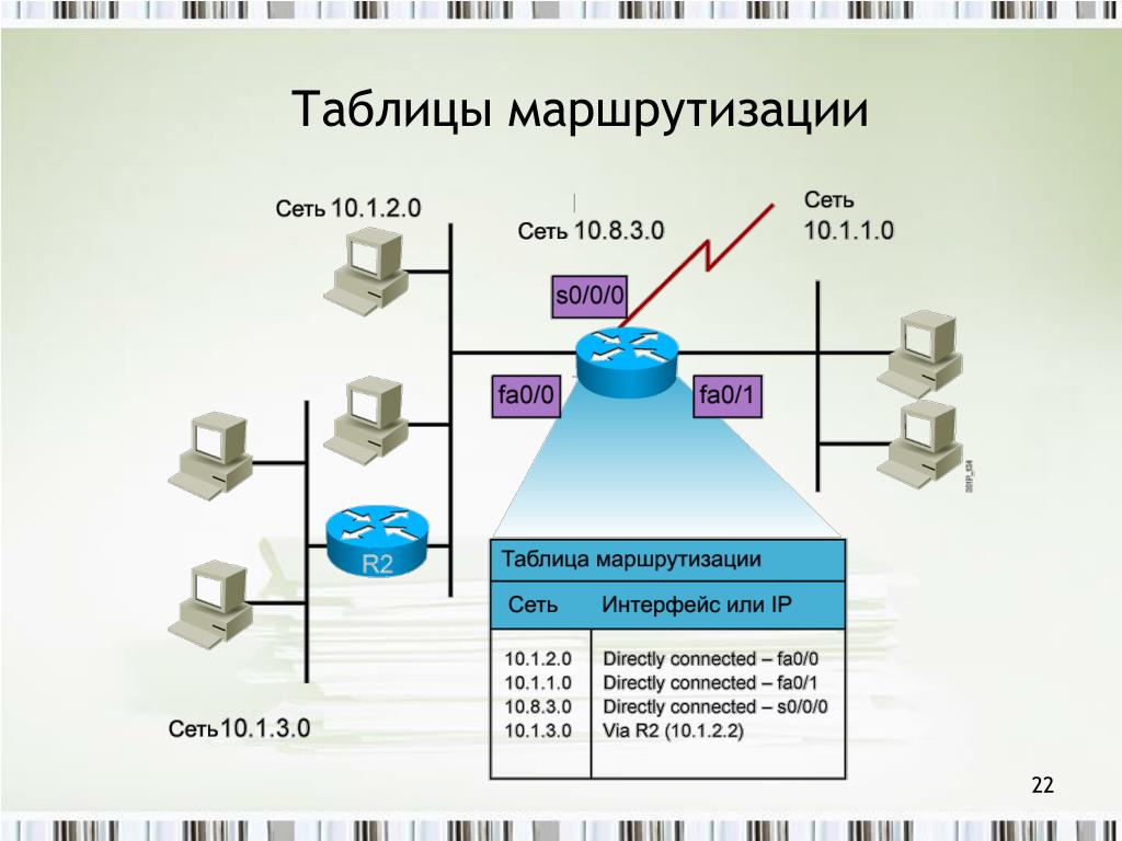В этой таблице в столбце «Адрес сети назначения» указываются адреса всех сетей, которым данный маршрутизатор может передавать пакеты.