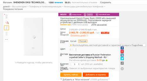 Вот так страница внешнего аккумулятора Xiaomi на Ali выглядела до изменений. Посмотрите на картинке ниже.
