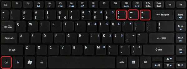 Любую страницу можно масштабировать с помощью горячих клавиш. Для увеличения используют комбинацию Ctrl и “+”, а для уменьшения – Ctrl и “-“. При этом вверху экрана будет отображаться информация об изменении в процентах.