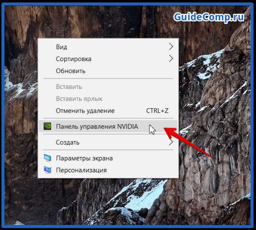 - Делаем правый клик мышью по рабочему столу и выбираем «Панель управления NVIDIA» (или аналогичная утилита для Radeon).