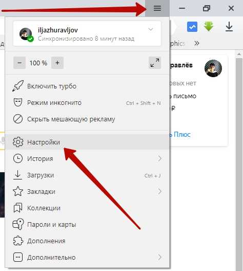 - Открыть браузер, и зайти в настройки. Посмотреть скриншот.