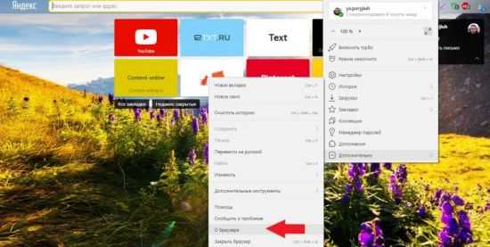 1. Выбрать в настройках вкладку «Дополнительно», а затем «О браузере».