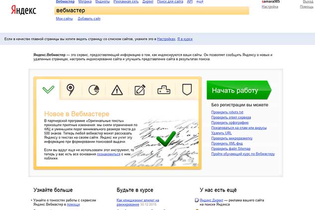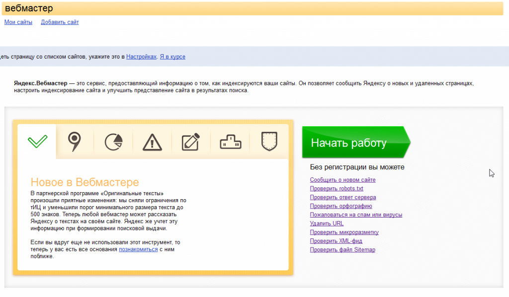 Сайты, добавленные вами в Яндекс.Вебмастер, отображаются на странице Мой сайт.