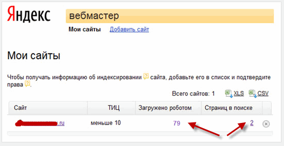 Количество страниц, которые были загружены роботом Яндекса при индексировании сайта.