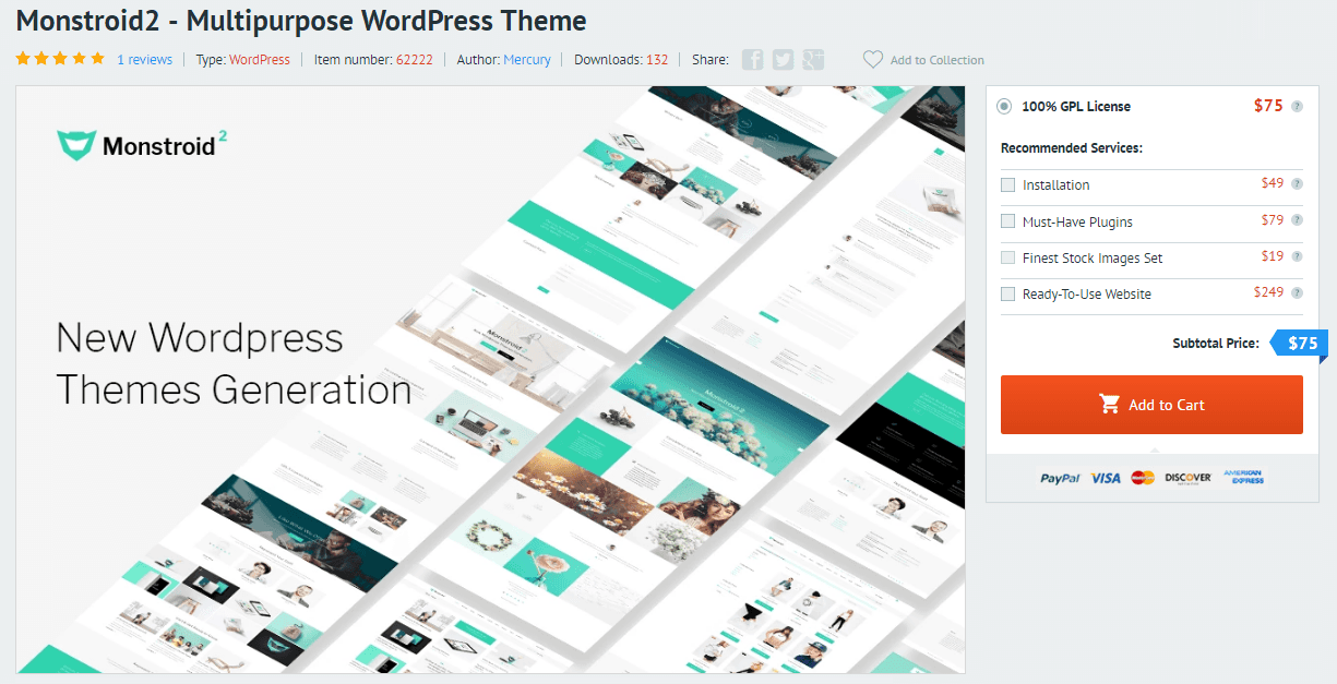 Если вам нужно перепродавать сайты на основе шаблона Monstroid2, выберите Коммерческую лицензию. Эта лицензия позволяет создавать и перепродавать 5 различных веб-сайтов на основе шаблона.