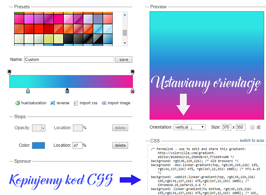 Основная цель нового синтаксиса — простота; теперь действительно легко кодировать общие градиенты, как вы увидите в примерах ниже. Второстепенная цель заключалась в том, чтобы указать что-то, где реализации были бы совместимы между браузерами.