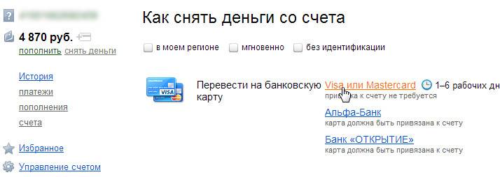 - получить наличные.
