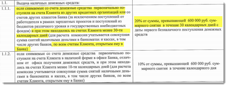 Комиссия за выдачу наличных