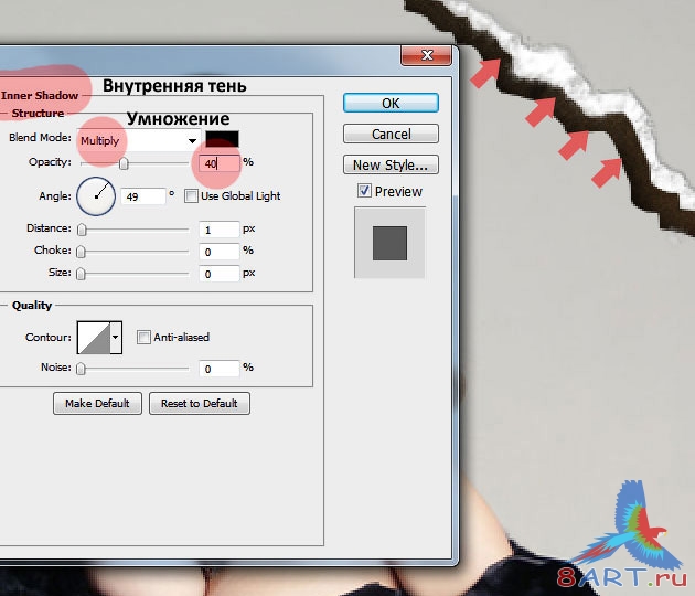 — Если вы хотите сохранить цвета оригинального изображения, то уменьшите насыщенность текстуры (Шаг 8)