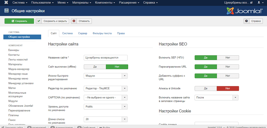 • для сайта на Joomla: в панели управления CMS перейдите в раздел Общие настройки → Сервер → Включить SSL;