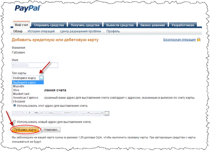 Я зарегистрировался в PayPal. Что дальше?