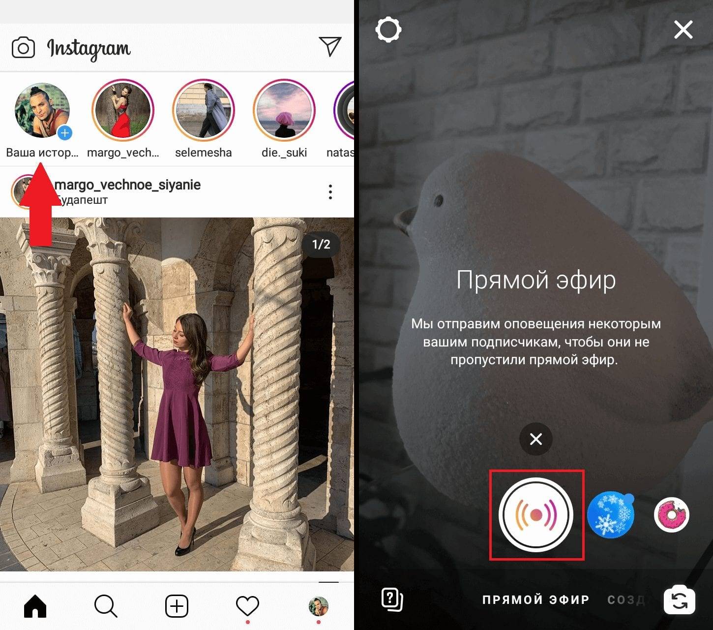 Авторизоваться на сайте Instagram,