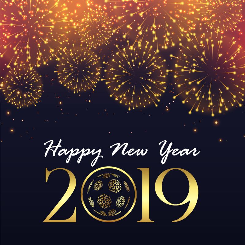 С Новым годом 2019 золотая буква и фейерверк Векторное изображение- лицензионные векторы