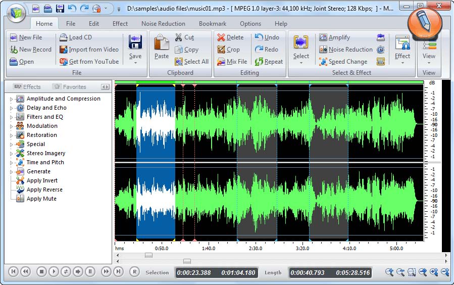 - Объедините аудиофайлы с эффектами затухания и появления.