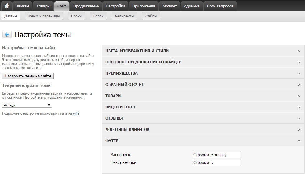Теперь мы видим искомое — панель управления сайтом или же админку.