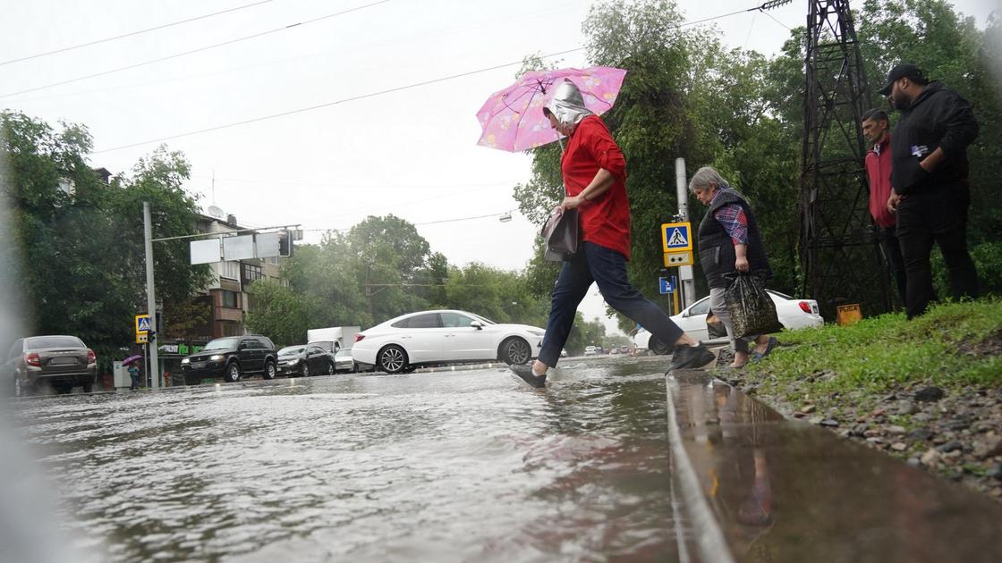 Кстати, о дожде. Публика-то прикрывалась зонтами, а каково было артисткам в вечерних платьях, с оголенными плечами? Но стихия подчеркивала их красоту и силу. Про силу подумала, когда Нонна Гришаева в костюме цвета чайной розы пропела буквально не экспромт, а слова из песни: «Хочу – и над Арбатом дождь включу». Так вот кто, оказывается, в нашем городе отвечает за осадки! А мы-то наивно думали, что Вильфанд и его всепогодная служба…