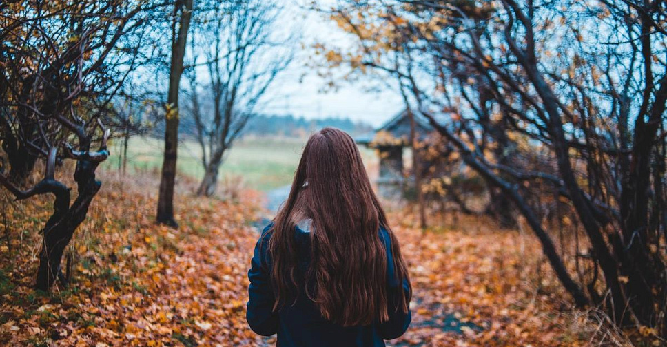 Девушка в черной куртке идет по тропе среди осеннего пейзажаЭКСКЛЮЗИВНОЕ ИЗОБРАЖЕНИЕ