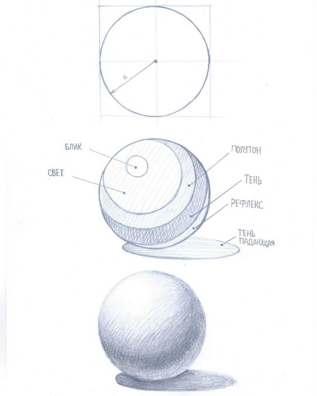 Это будет прекрасно выглядеть рядом с менее четкими штрихами, еще больше отделяя пространство тени от света. Когда мы собираемся работать над рисунком больше часа, иллюзию трехмерности рисунка можно передать с помощью объемов светотени. Те части фигуры, которые повернуты от источника света, становятся темнее по мере приближения к линии тени. Так работает градация оттенков, передает эффект округлости предмета. Чем более округла форма, тем больше оттенков мы видим.