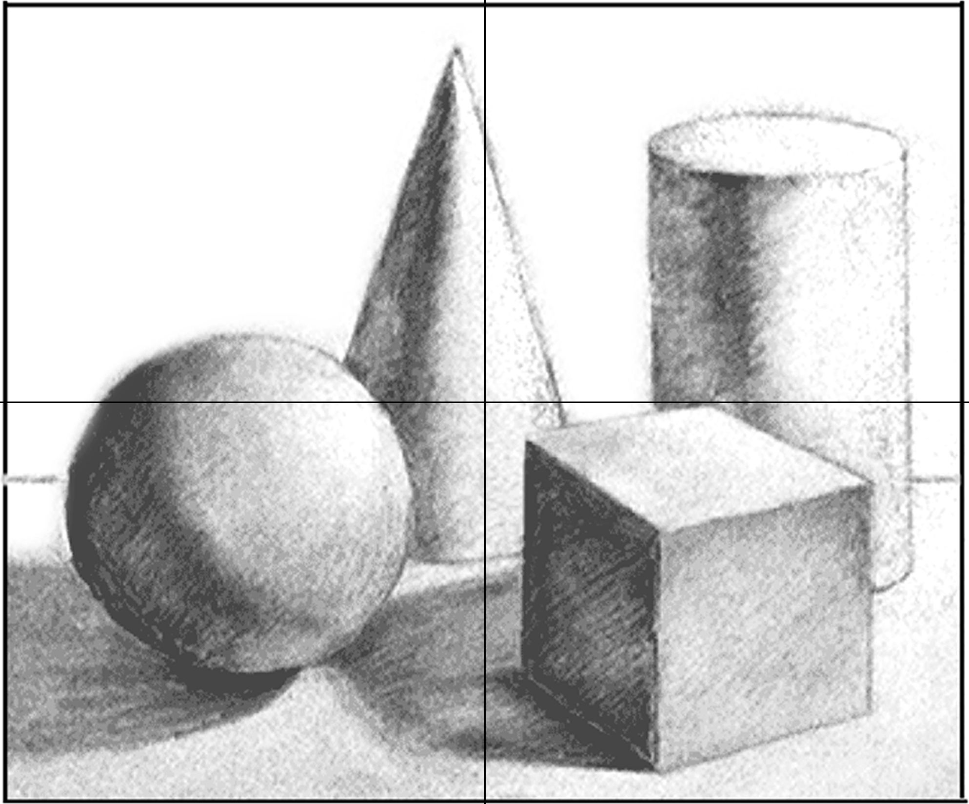 Периклис Пагратис из колледжа искусств и дизайна в г. Саванна, США, учит своих студентов основам рисования и не только, включая мысль о том, что, когда вы продумываете композицию, то вы должны думать об объекте, как о голове Медузы. Не смотрите на него прямо, или обратитесь в камень (ну или, если не вы сами, то ваш рисунок). Негативное пространство вокруг предмета должно играть неотъемлемую роль в композиции. Когда дело дойдет до проработки объекта, его у вас будет достаточно на детальную прорисовку.