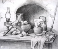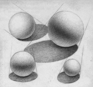 Тень: Тени помогают художнику выявлять объекты, которые лучше освещены. Начиная работу с тенями, найдите самую освещенную точку рисунка и оставьте ее не заштрихованной (белой как лист), тени же передайте легким штрихом. Над объемами тут беспокоится не стоит, мы передаем такими штрихами именно светотень. Очень важно знать, какие формы на рисунке освещены и где падает тень, потому что художники часто путают штрихи объема с тенями.