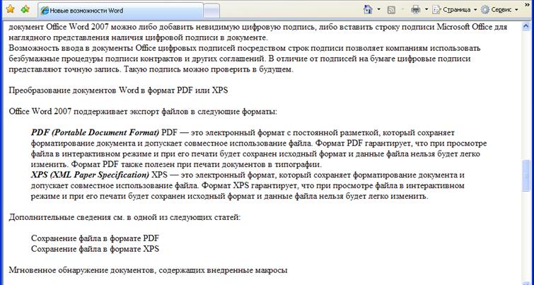 В архиве, который содержит электронные и бумажные документы, сложно найти нужный документ, а сам архив занимает немало места и требует наличия приложения, в котором документ был создан. | Документы PDF компактны и удобны для поиска; для их чтения достаточно иметь приложение Reader. Наличие ссылок облегчает навигацию внутри документа PDF. |
