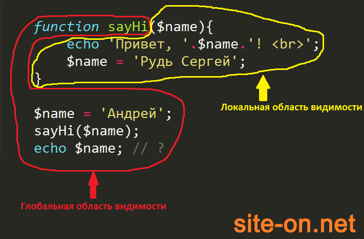 При использвании переменных в программе на PHP необходимо принимать во внимание область их действия (видимости). Это — тот контекст (блок кода), где их можно использовать.